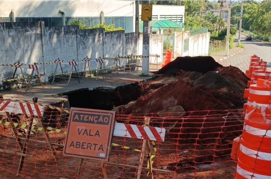 Equipes da Prefeitura de Hortolândia trabalham no conserto de um afundamento de solo de grandes proporções na rua Duque de Caxias, sentido lagoa do Jardim Amanda, em frente da EMEIEF (Escola Municipal de Educação Infantil e Ensino Fundamental) Jd. Amanda III. De acordo com a Secretaria de Serviços Urbanos, o trabalho permanece pelos próximos dias. Não há interdições no trânsito mas a via recebe grande fluxo do tráfego, principalmente na entrada e saída de alunos do colégio, portanto, o motorista deve redobrar a atenção ao passar pela área. Também no Jardim Amanda, foi consertado um bueiro na avenida Tarsila do Amaral. Já no Jardim São Bento, outro conserto de erosão de solo foi concluído em uma via de acesso ao parque socioambiental do bairro.