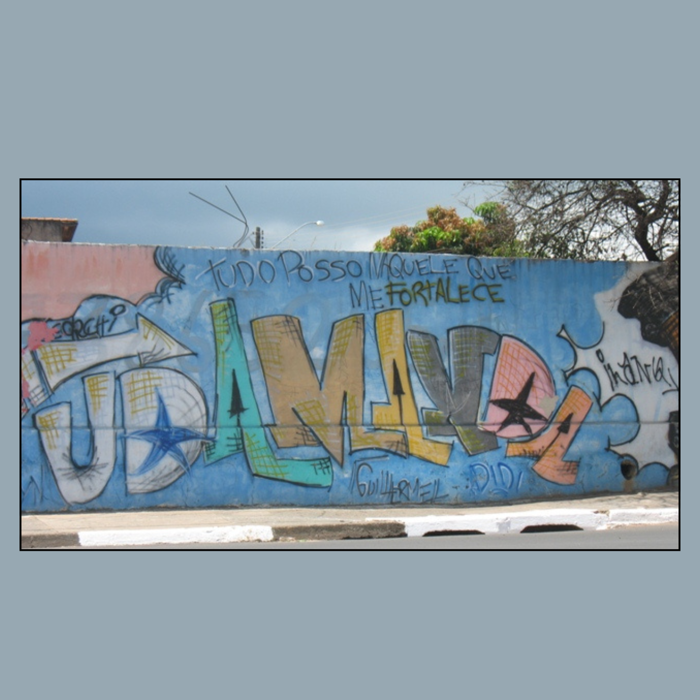 Morador do Jardim Amanda, Guilherme pintou o muro do Serghetti em meados da segunda metade dos anos 2000. Por sorte fizemos o registro fotográfico em 2007, o que se converteu em um registro de memória do bairro, em um determinado período.