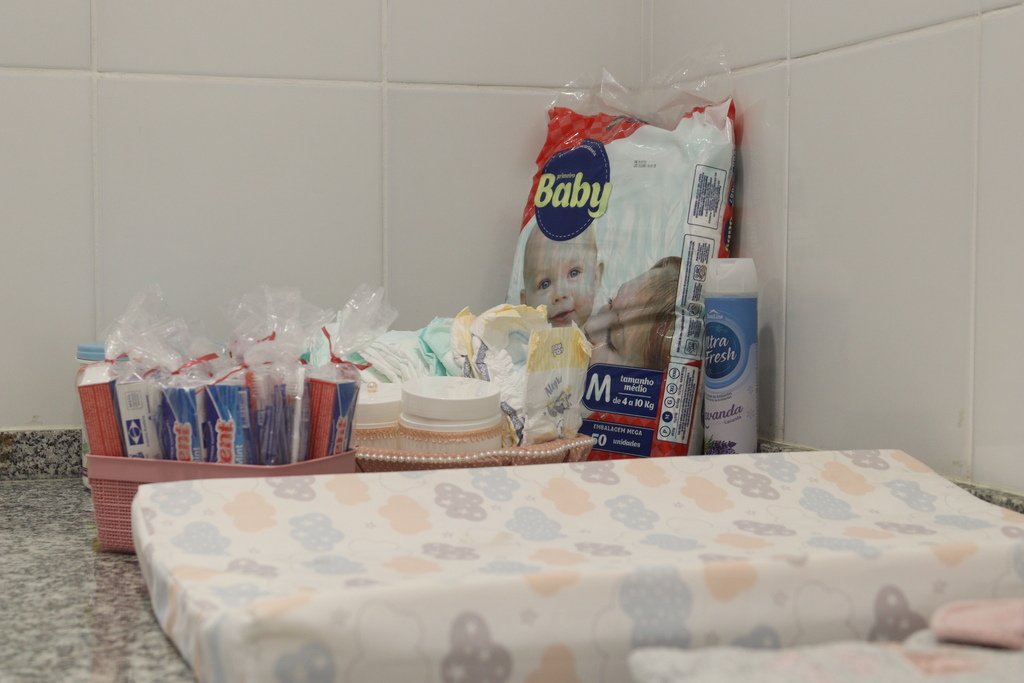 O “closet solidário” funciona na sede do CRAM, dentro da sala de acolhimento, onde a mulher em atendimento dispõe também de banheiro com chuveiro elétrico e três camas, uma delas para crianças.